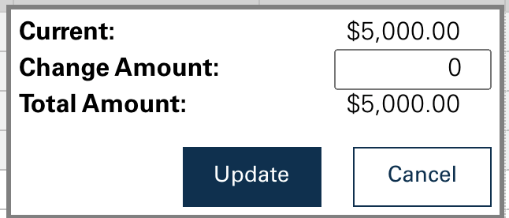 - The Change Amount row is where you enter the revision (Change Order) you wish to make on the Line Item. This can be positive or negative amount.